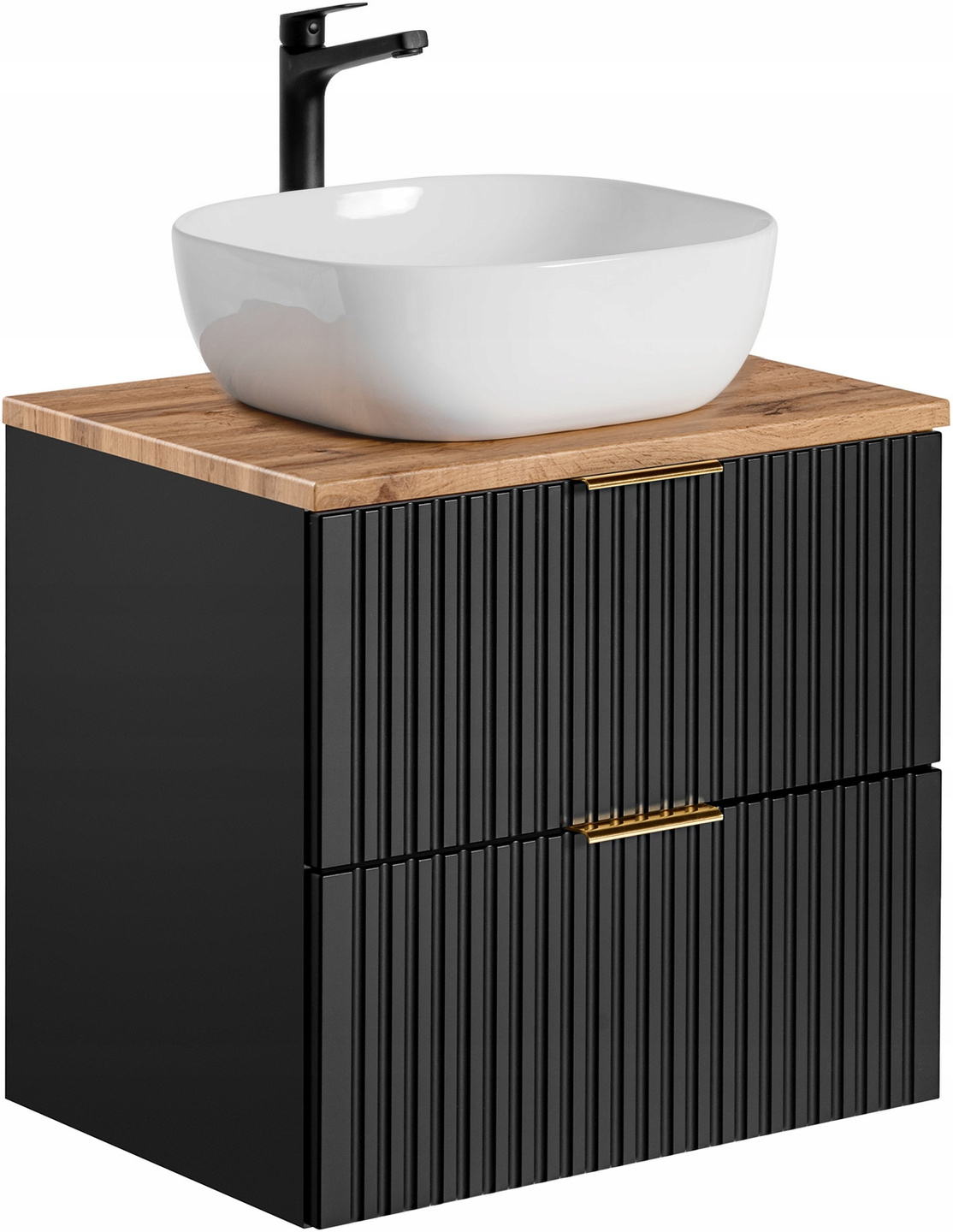 Zestaw szafka z blatem + umywalka 60cm, Meble ADEL CZARNY / DĄB WOTAN