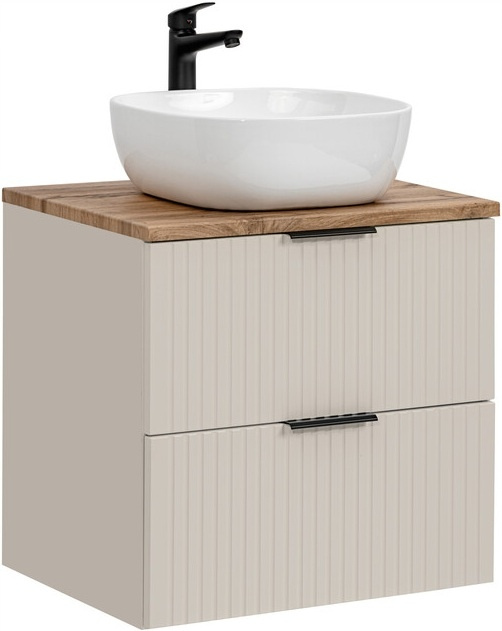 Meble łazienkowe Adel łączą elegancję i funkcjonalność. Pionowe, ryflowane fronty nadają meblom unikalny charakter i optycznie powiększają przestrzeń łazienki, a kaszmirowy kolor dodaje subtelnego ciepła, doskonale komponując się z różnorodnymi aranżacjami wnętrz.