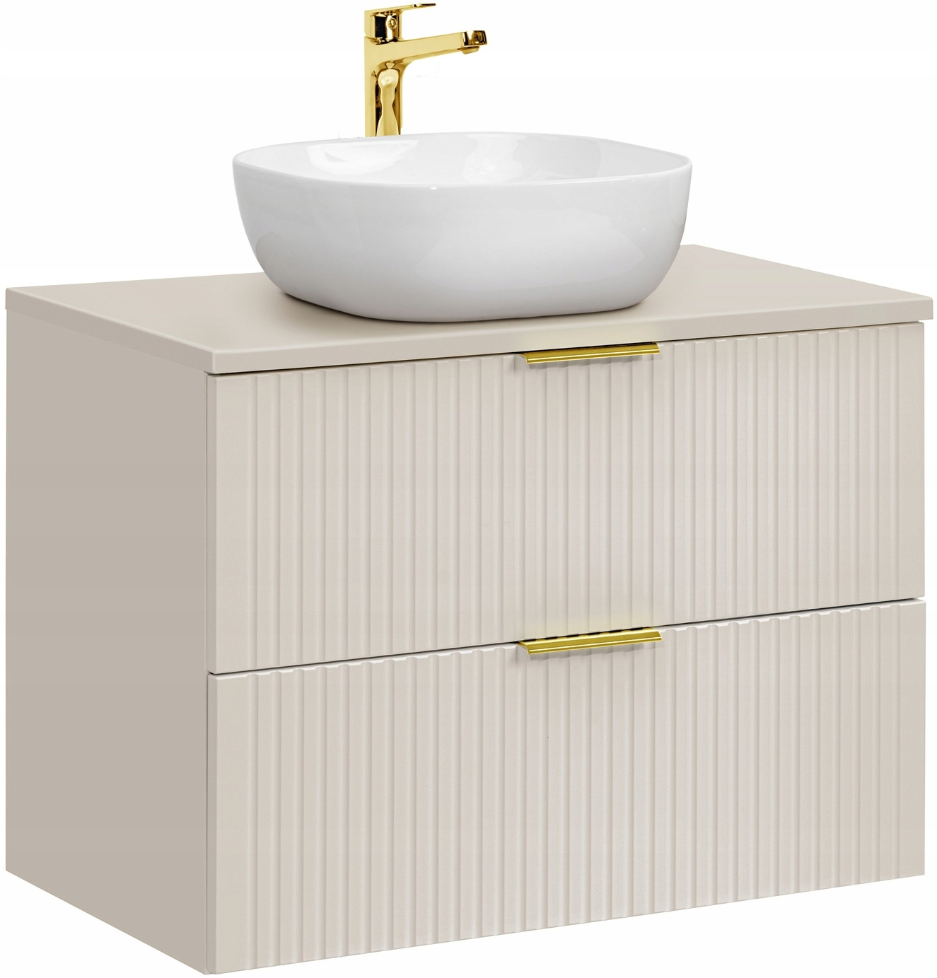 Meble łazienkowe Adel łączą elegancję i funkcjonalność. Pionowe, ryflowane fronty nadają meblom unikalny charakter i optycznie powiększają przestrzeń łazienki.